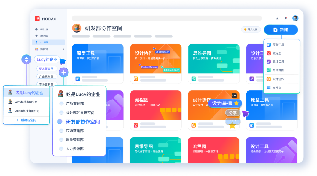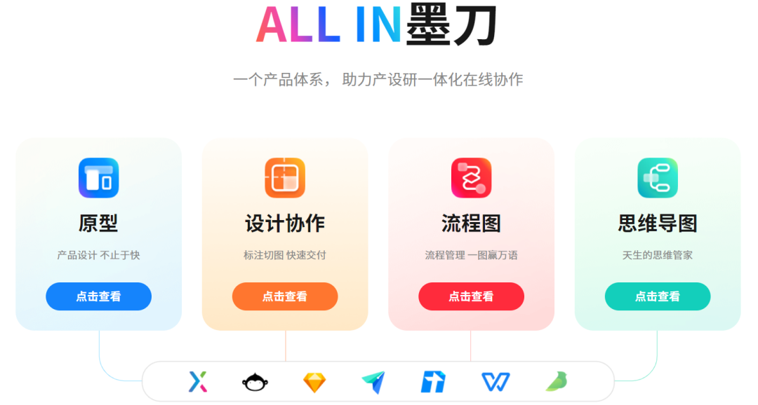 自创建以来,墨刀不断致力于产品设计在线协同办公平台的研究与开发,相继上线原型、设计协作、流程图、思维导图四款核心工具,帮助用户真正实现产品设计全流程在线协同,极大提高了个人和团队的工作效率。